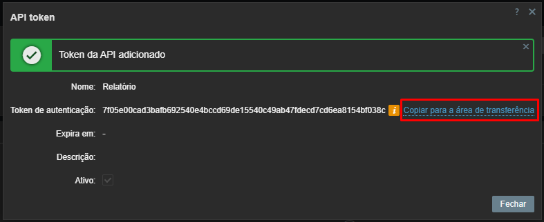⚠️ Observação: Salve esse token antes de fechar a tela.